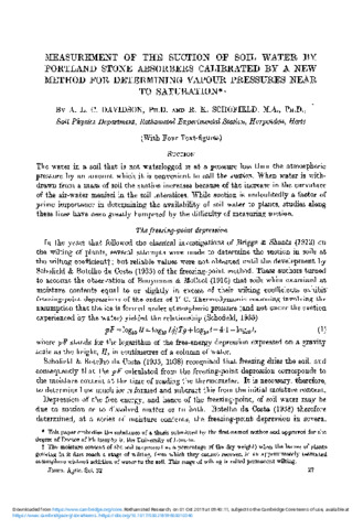 Measurement of the suction of soil water by Portland stone absorbers calibrated by a new method for determining vapour pressures near to saturation.