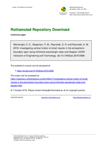 | Keywords | Small insects, Dispersal, Radar |