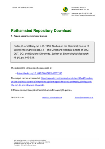Bulletin of Entomological Research, 46 (4).