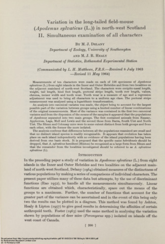 Variation in the long-tailed field-mouse (Apodemus sylvaticus (L.)) in North-West Scotland II. Simultaneous examination of all characters.