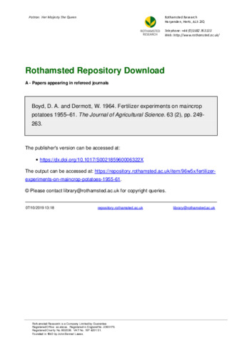 Fertilizer experiments on maincrop potatoes 1955–61.