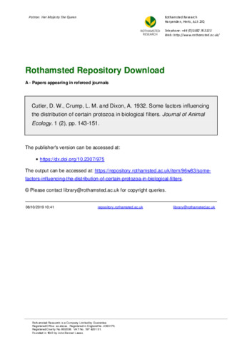 Some factors influencing the distribution of certain protozoa in biological filters.