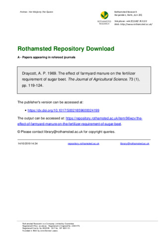 The effect of farmyard manure on the fertilizer requirement of sugar beet