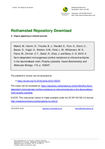 | Keywords | Plutella xylostella , Flavin monooxygenase, Resistance, Chlorantraniliprole, Diamide, Insecticides |