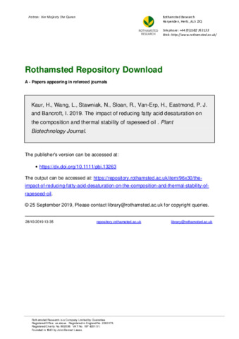 | Keywords | Brassica napus, Rapeseed, Oilseed rape, Polyunsaturated fatty acids, Thermal stability, Erucic acid |