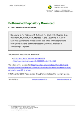 | Additional information | This research was funded by the Natural Environment Research Council (NERC) and the Biotechnology and Biological Sciences Research Council (BBSRC) under research program NE/N018125/1 LTS-M ASSIST – Achieving Sustainable Agricultural Systems www.assist.ceh.ac.uk. We also thank Bilateral BBSRC-Embrapa grant on “Exploitation of the wheat rhizosphere microbiome for sustainable wheat production” (BB/N016246/1); “Optimization of nutrients in soil–plant systems: How can we control nitrogen cycling in soil?” (BBS/E/C/00005196); and “S2N – Soil to nutrition – Work package 1 – Optimizing nutrient flows and pools in the soil–plant–biotasystem”(BBS/E/C/000I0310). |