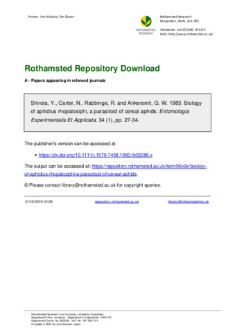 Biology of aphidius rhopalosiphi, a parasitoid of cereal aphids.
