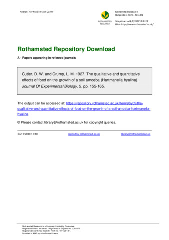 The qualitative and quantitative effects of food on the growth of a soil amoeba (Hartmanella hyalina)