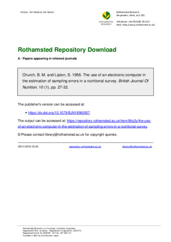 British Journal Of Nutrition, 10 (1).