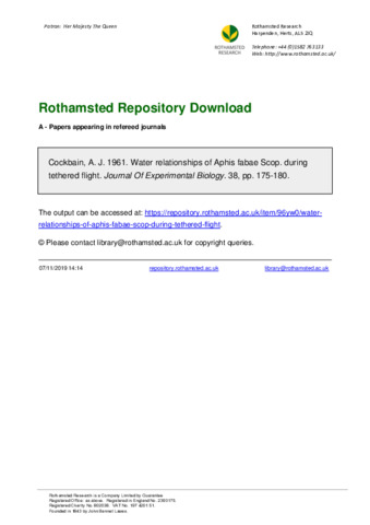 Water relationships of Aphis fabae Scop. during tethered flight.