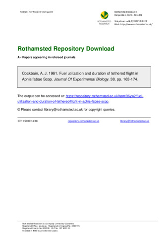 Fuel utilization and duration of tethered flight in Aphis fabae Scop.