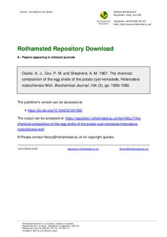 The chemical composition of the egg shells of the potato cyst-nematode, Heterodera rostochiensis Woll.