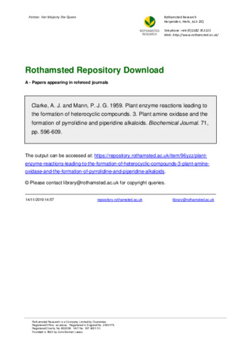 Plant enzyme reactions leading to the formation of heterocyclic compounds. 3. Plant amine oxidase and the formation of pyrrolidine and piperidine alkaloids
