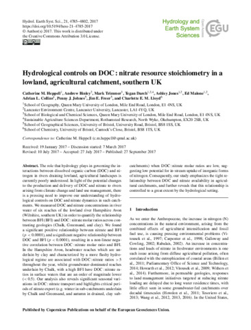 Hydrological controls on DOC : nitrate resource stoichiometry in a lowland, agricultural catchment, southern UK