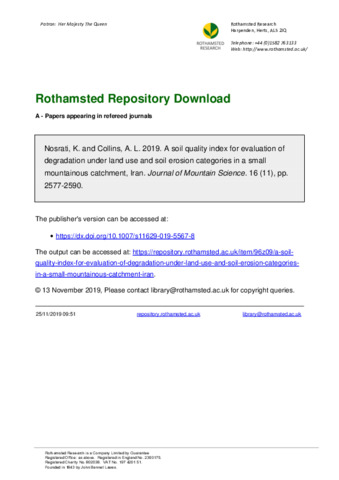 A soil quality index for evaluation of degradation under land use and soil erosion categories in a small mountainous catchment, Iran