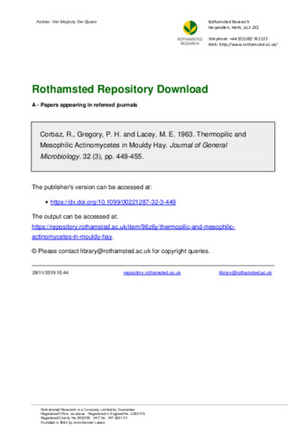 Thermopilic and Mesophilic Actinomycetes in Mouldy Hay.
