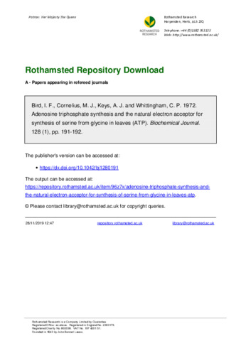 Bird, I. F., Cornelius, M. J., Keys, Alfred J. and Whittingham, Charles Percival