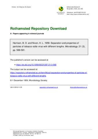 Separation and properties of particles of tobacco rattle virus with different lengths