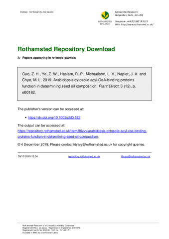 Arabidopsis cytosolic acyl-CoA-binding proteins function in determining seed oil composition