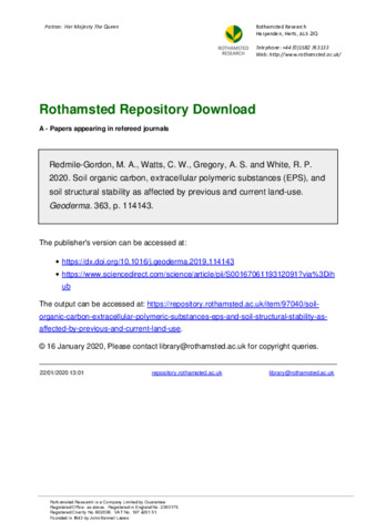 Soil organic carbon, extracellular polymeric substances (EPS), and soil structural stability as affected by previous and current land-use