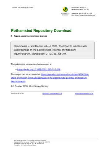The Effect of Infection with Bacteriophage on the Electrokinetic Potential of Rhizobium leguminosarum.