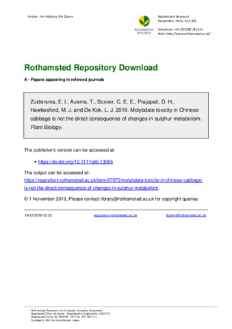 | Keywords | Brassica, Heavy metals, Molybdenum, Sulphate assimilation, Sulphate uptake |