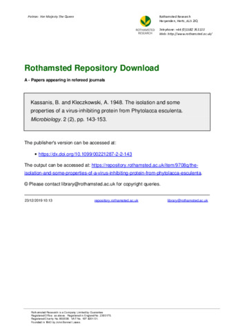 The isolation and some properties of a virus-inhibiting protein from Phytolacca esculenta