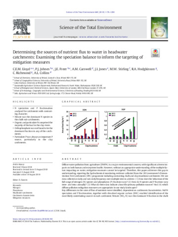 Determining the sources of nutrient flux to water in headwater catchments: Examining the speciation balance to inform the targeting of mitigation measures