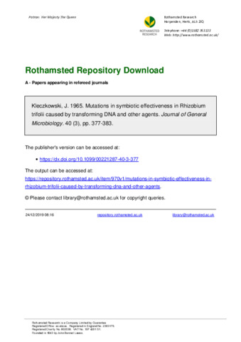 Mutations in symbiotic effectiveness in Rhizobium trifolii caused by transforming DNA and other agents.