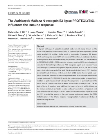 The Arabidopsis thaliana N-recognin E3 ligase PROTEOLYSIS1 influences the immune response.