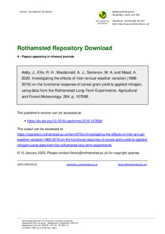 Investigating the effects of inter-annual weather variation (1968-2016) on the functional response of cereal grain yield to applied nitrogen, using data from the Rothamsted Long-Term Experiments