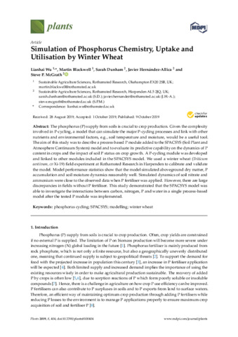 | Keywords | Phosphorus cycling, SPACSYS, Modelling, Winter wheat |