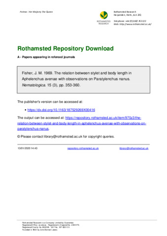The relation between stylet and body length in Aphelenchus avenae with observations on Paratylenchus nanus.