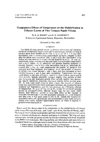 Comparative effects of temperature on the multiplication in tobacco leaves of two tobacco rattle viruses.