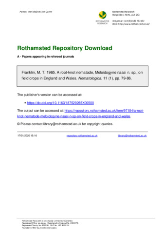 A root-knot nematode, Meloidogyne naasi n. sp., on field crops in England and Wales.