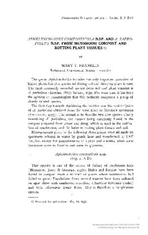 Aphelenchoides composticola n. sp. and A. saprophilus n. sp. from mushroom compost and rotting plant tissues.
