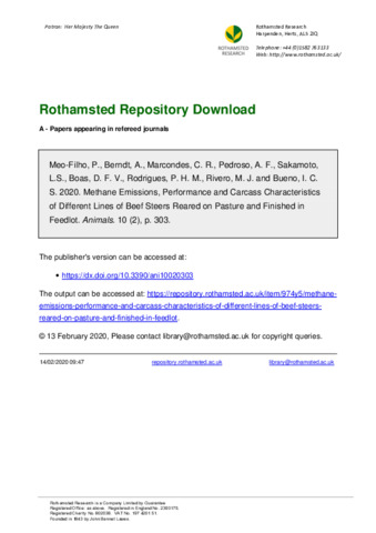 | Keywords | Beef cattle, Genetics, Greenhouse gases, Growth performance, Nutrition |
