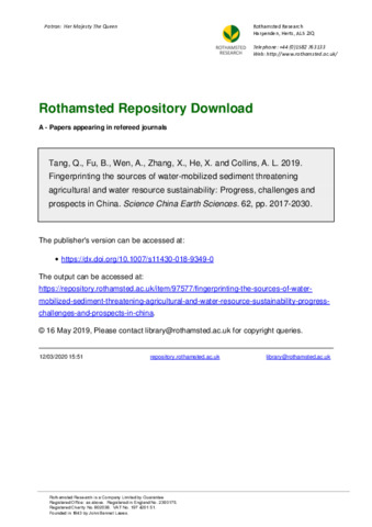 | Keywords | Soil erosion, Sediment source fingerprinting, Tracer properties, Sediment budgets, Catchment management, China |