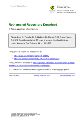 Diamide resistance: 10 years of lessons from Lepidopteran pests