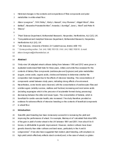 Historical changes in the contents and compositions of fibre components and polar metabolites in white wheat flour