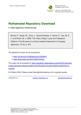 The ‘Palo a Pique’ Long-Term Research Platform: First 25 years of a Crop-Livestock Experiment in Uruguay