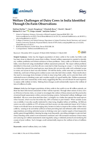 | Keywords | Animal welfare, Dairy cow, India |