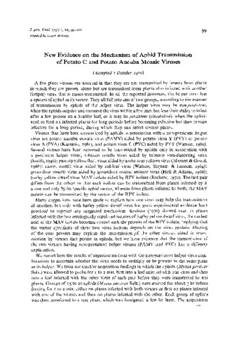 New evidence on the mechanism of aphid transmission of potato C and potato aucuba mosaic viruses.