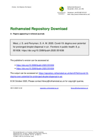 Covid-19: dogma over potential for prolonged droplet dispersal in air