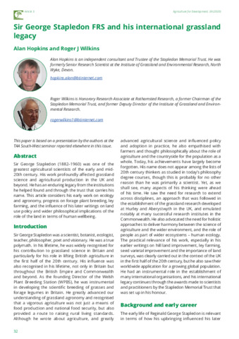 Sir George Stapledon FRS and his international grassland legacy