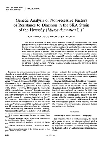 Genetic analysis of non-recessive factors of resistance to diazinon in the SKA strain of the housefly (Musca domestica L)