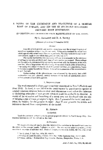 A Model of the Extension and Branching of a Seminal Root of Barley, and Its Use in Studying Relations Between Root Dimensions I the Model.