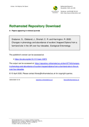 Changes in phenology and abundance of suction‐trapped Diptera from a farmland site in the UK over four decades