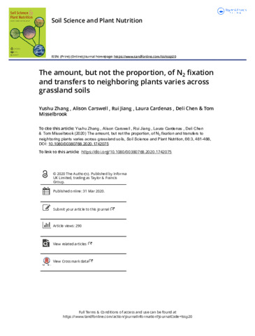 | Keywords | Biological nitrogen fixation, Soil characteristics, Red clover, Nitrogen transfer, Intercropping, Grassland |