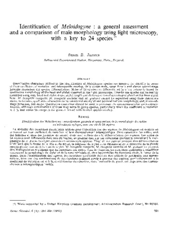 Identification of Meloidogyne: a general assessment and a comparison of male morphology using light microscopy with a key to 24 species.
